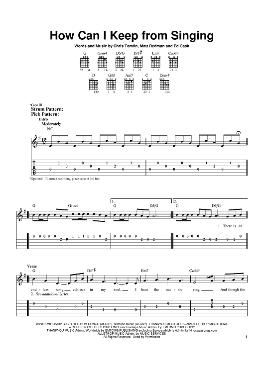 Digital Sheet Music for How Can I Keep From Singing by Matt Redman, Chris Tomlin, Ed Cash scored for Easy Guitar Tab; id:396968