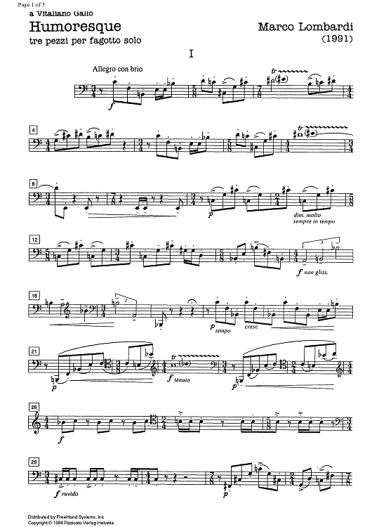 Digital Sheet Music for Humoresque by , Marco Lombardi scored for Bassoon; id:330044