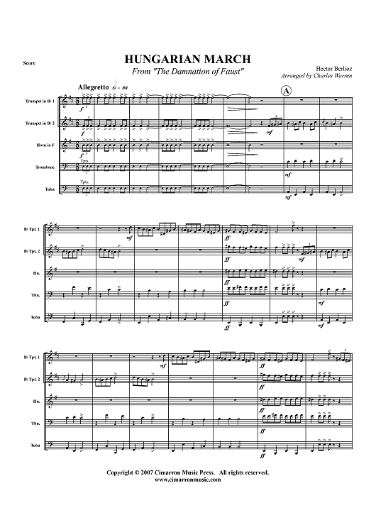Digital Sheet Music for Hungarian March from "The Damnation of Faust" - Score by Hector Berlioz, Charles Warren scored for Brass Quintet; id:424319