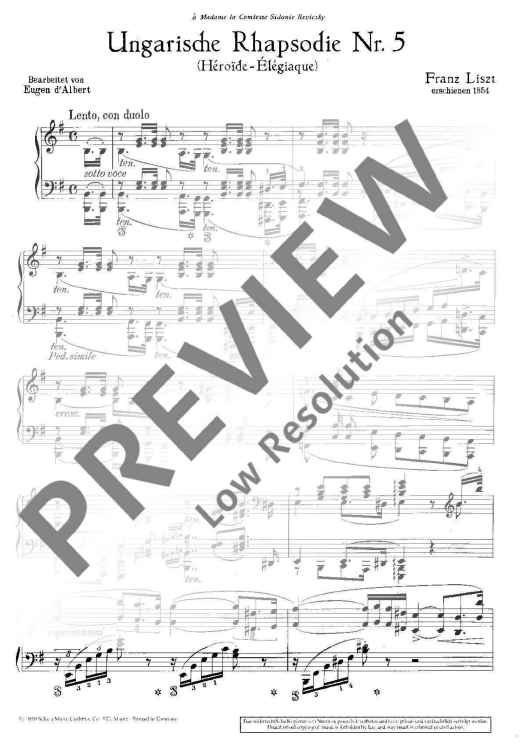 Digital Sheet Music for Hungarian Rhapsody in E minor by Franz Liszt, Eugen d'Albert scored for Piano; id:474849