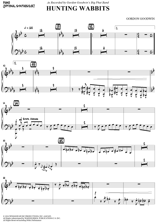 "Hunting Wabbits - Piano" Sheet Music by Gordon Goodwin's Big Phat Band