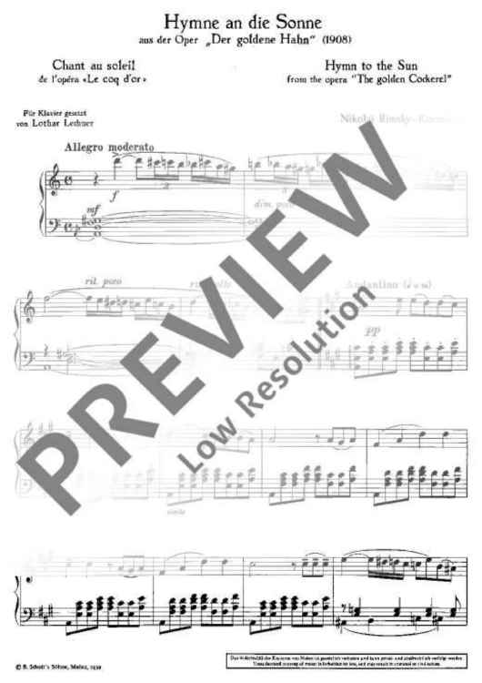 Digital Sheet Music for Hymn to the Sun in A major by Nikolai Rimsky-Korsakov scored for Piano; id:482314