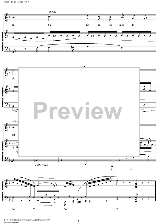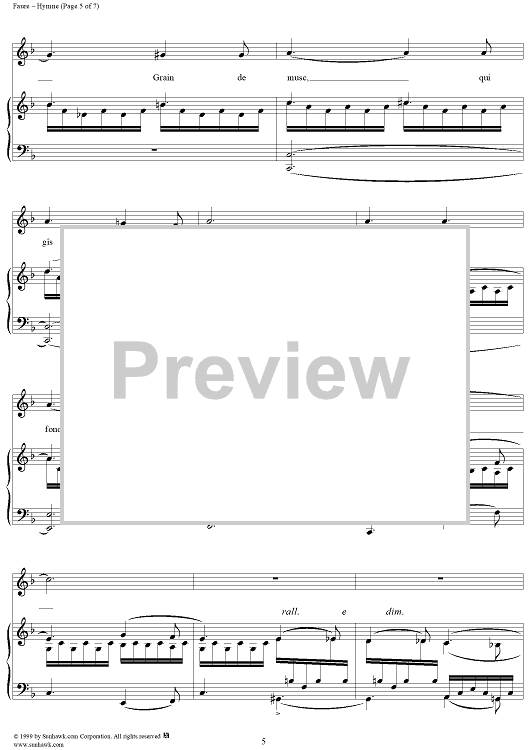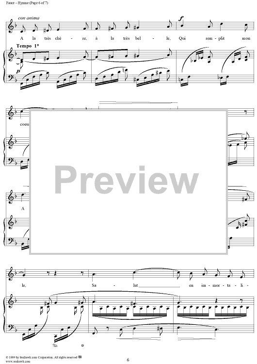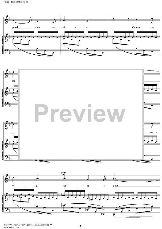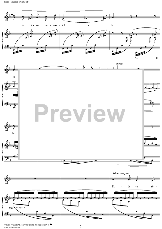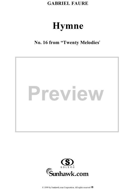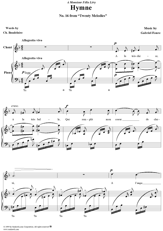 Digital Sheet Music for Hymne - Op. 7, No. 2 by Gabriel Fauré, Charles Baudelaire scored for Voice/Piano; id:270141