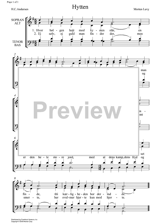 Digital Sheet Music for Hytten by Morten Levy scored for SATB Choir; id:354220