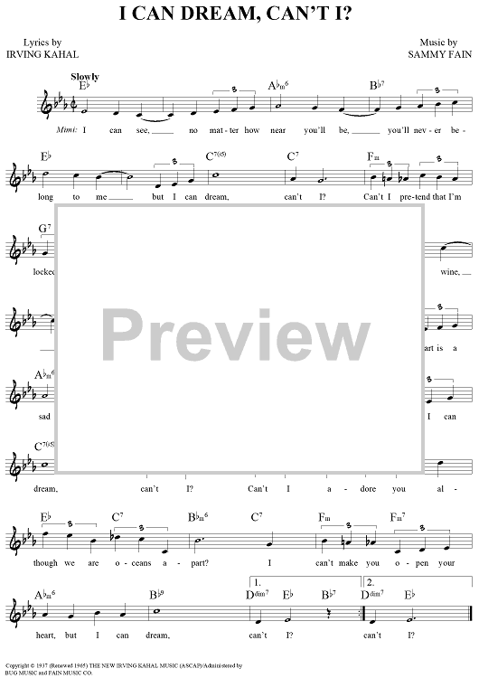 "I Can Dream, Can't I?" Sheet Music by Sammy Fain
