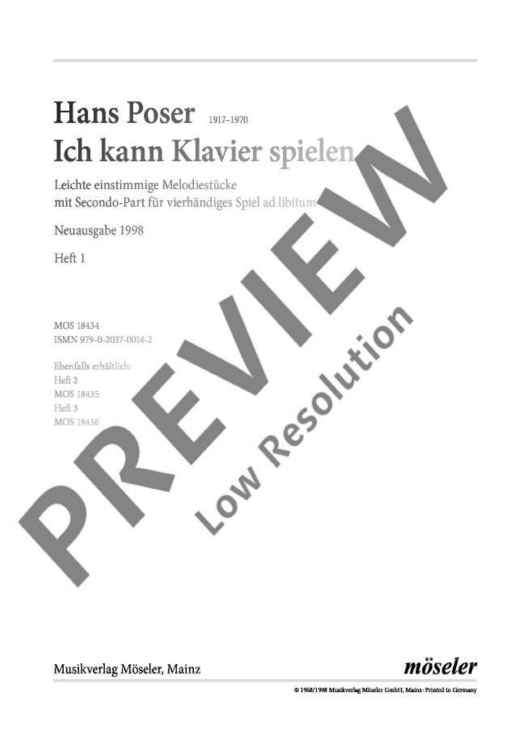 Leichte, einstimmige Melodiestücke von Hans Poser für den Klavier-Anfänger. Mit Secondo-Part für vierhändiges Spiel ad libitum. Stücke: Auf dem See, Der Jäger, Schlittenfahrt, Wiegenlied, u.a.