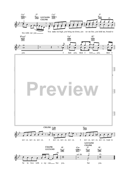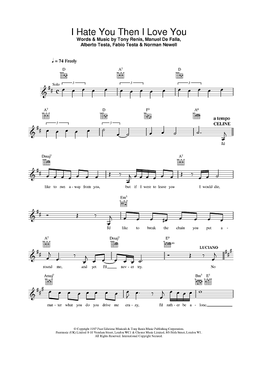 Digital Sheet Music for I Hate You Then I Love You by Celine Dion scored for Lead Sheet; id:376621