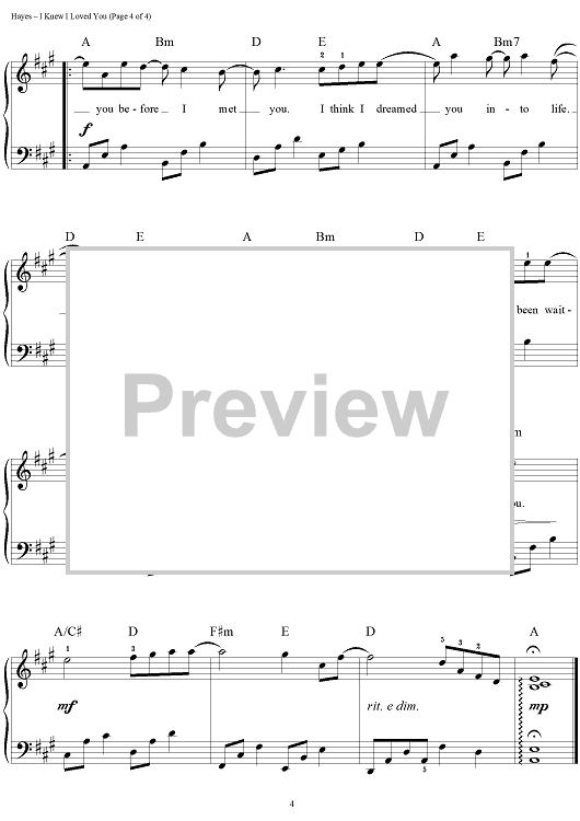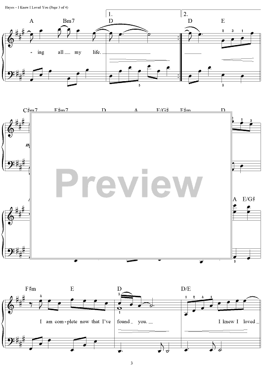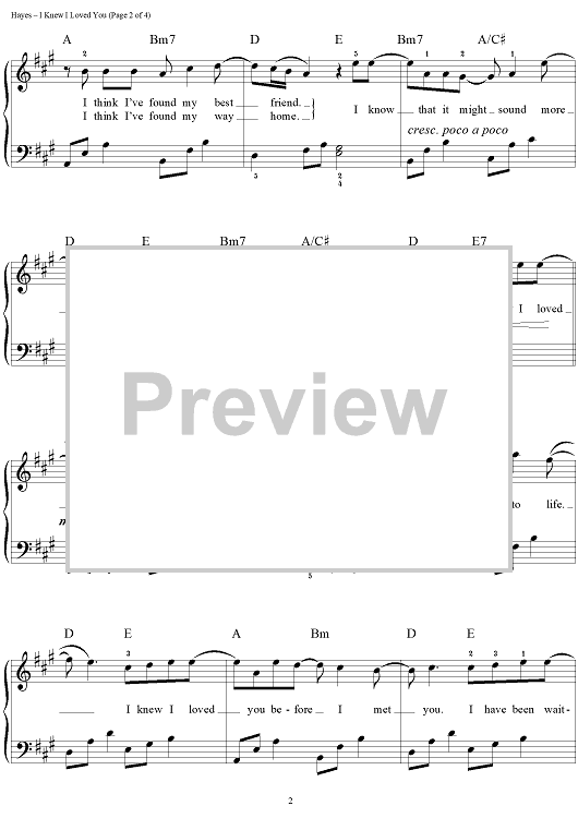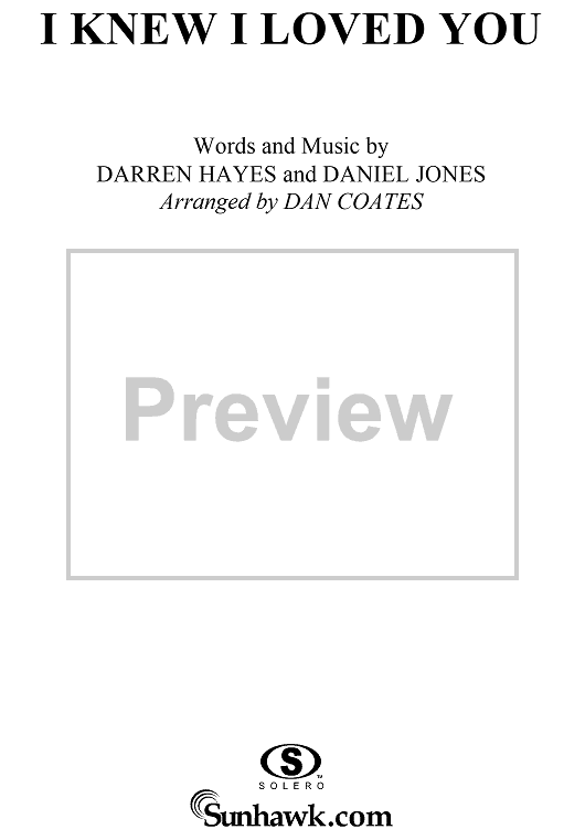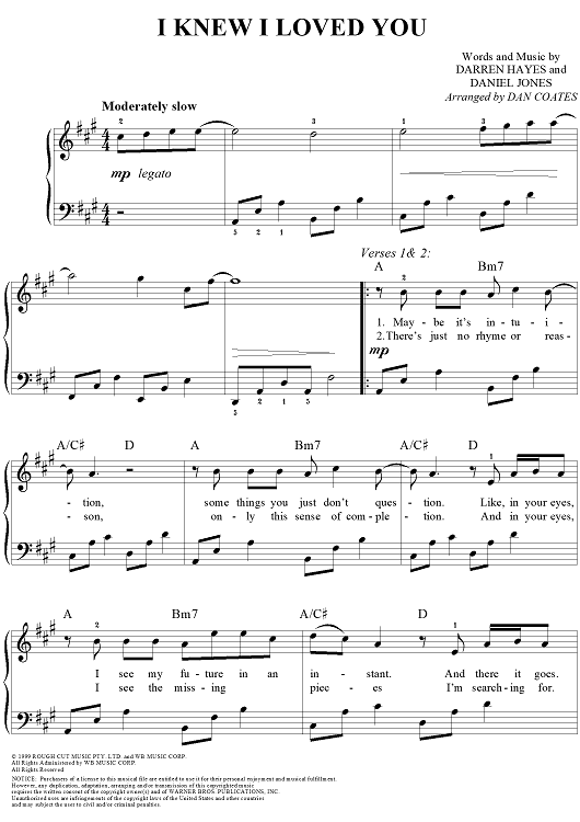 Digital Sheet Music for I Knew I Loved You by Dan Coates, Darren Hayes, Daniel Jones, Savage Garden scored for Easy Piano/Vocal; id:267002