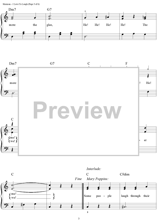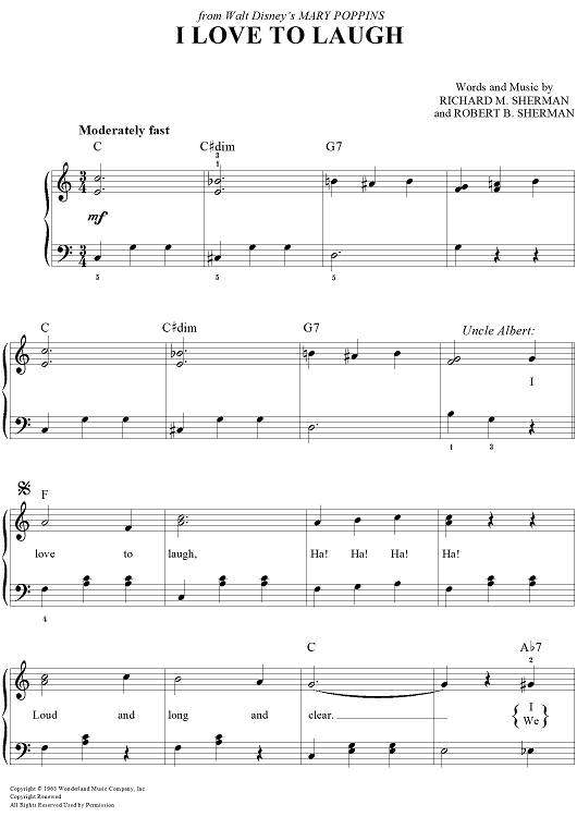 Digital Sheet Music for I Love To Laugh by Richard M. Sherman, Robert B. Sherman scored for Easy Piano/Vocal/Chords; id:449613
