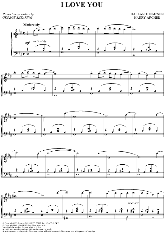 Digital Sheet Music for I Love You by George Shearing, Harry Archer, Harlan Thompson scored for Piano Solo; id:413658