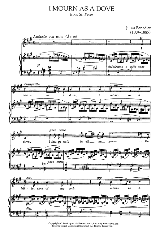 "I Mourn As A Dove - from St. Peter" Sheet Music by Sir Julius Benedict
