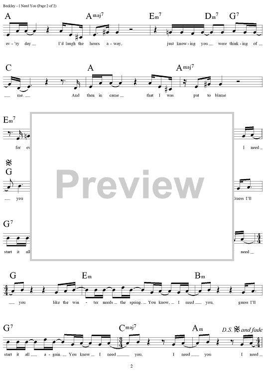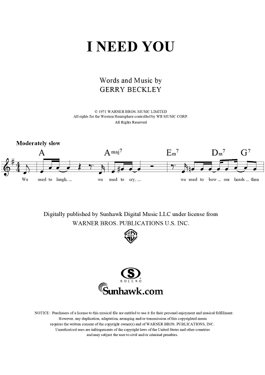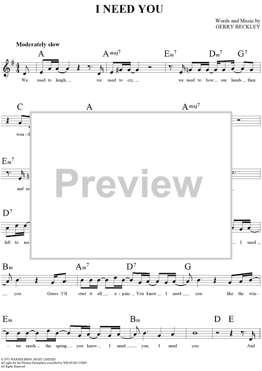 Digital Sheet Music for I Need You by America, Gerry Beckley scored for Lead Sheet; id:275820