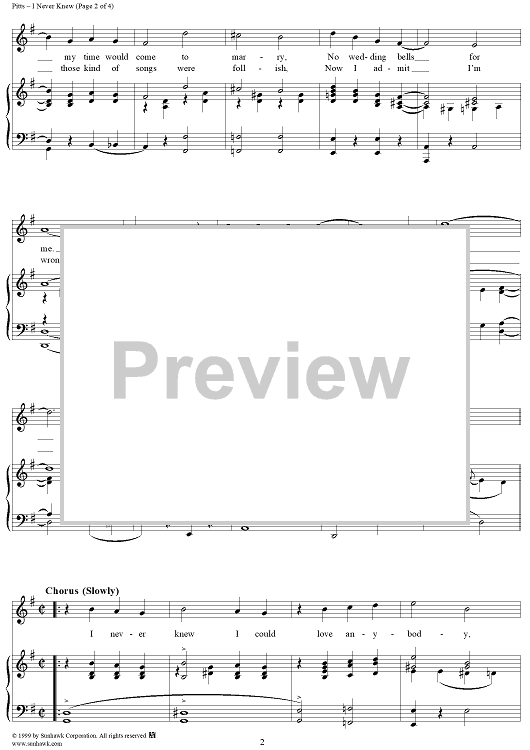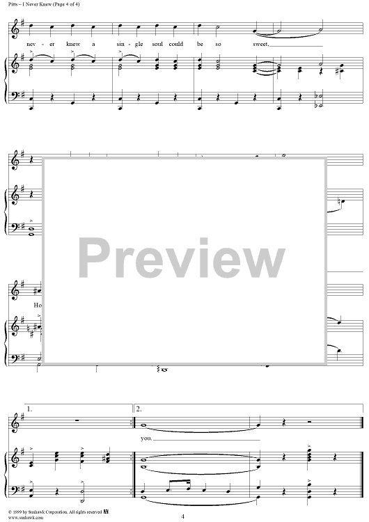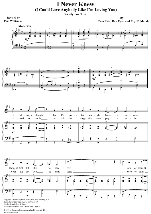 Digital Sheet Music for I Never Knew by Tom Pitts scored for Piano/Vocal; id:262597