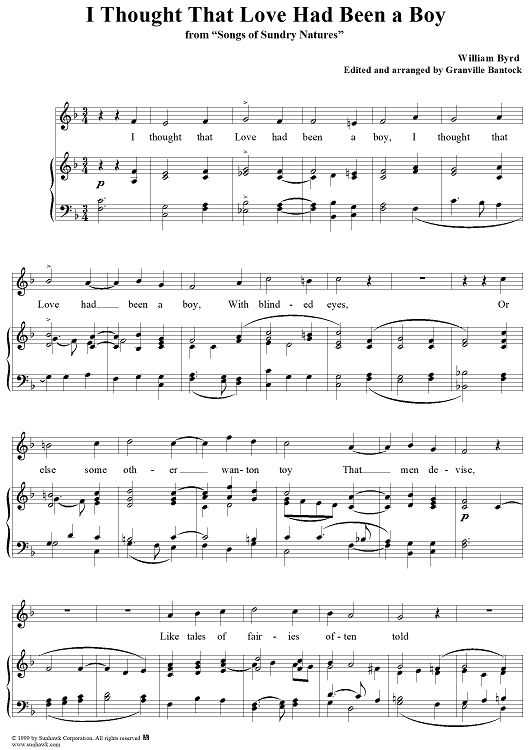 Digital Sheet Music for I Thought That Love Had Been a Boy by William Byrd, Granville Bantock scored for Piano/Vocal; id:113835