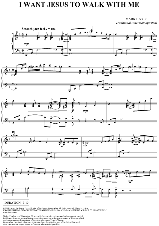 Digital Sheet Music for I Want Jesus to Walk With Me by Mark Hayes, Traditional American Spiritual scored for Piano Solo; id:433375
