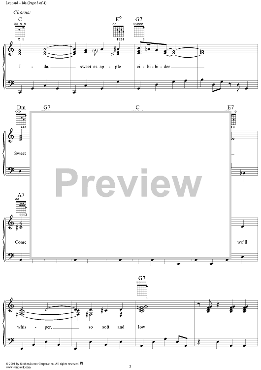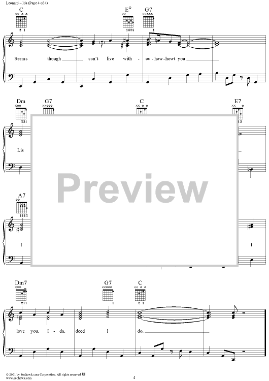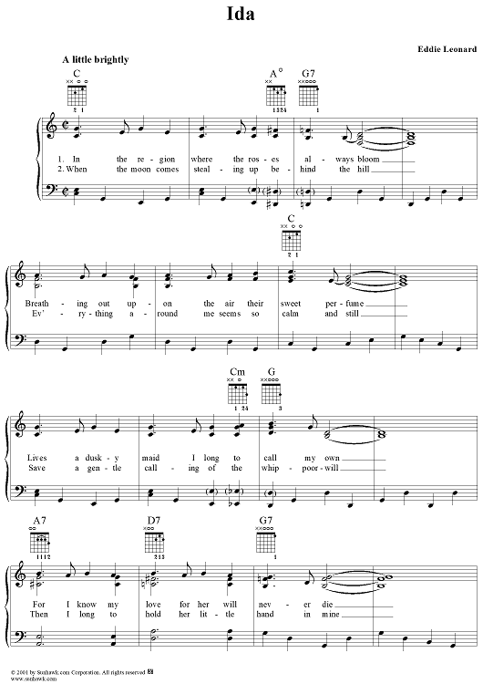 Digital Sheet Music for Ida by Eddie Leonard scored for Piano/Vocal; id:250558