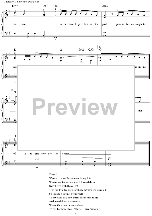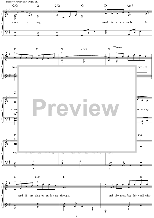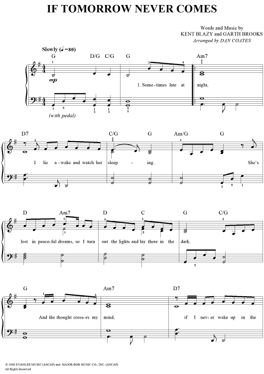 Digital Sheet Music for If Tomorrow Never Comes by Dan Coates, Garth Brooks, Kent Blazy scored for Easy Piano/Vocal; id:112054