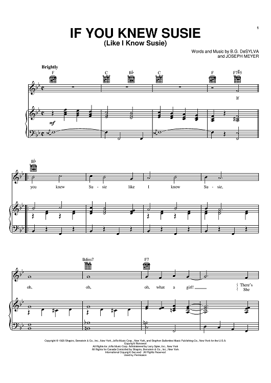 Digital Sheet Music for If You Knew Susie (Like I Know Susie) by Eddie Cantor, Joseph Meyer, Buddy DeSylva scored for Piano/Vocal/Chords; id:375203
