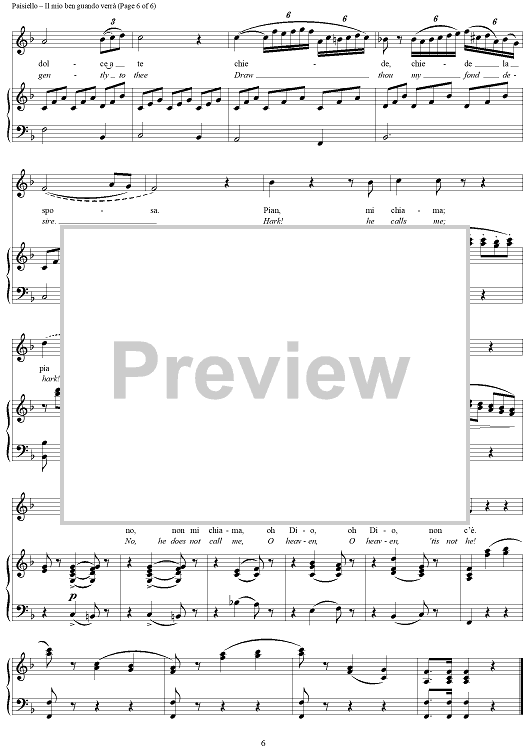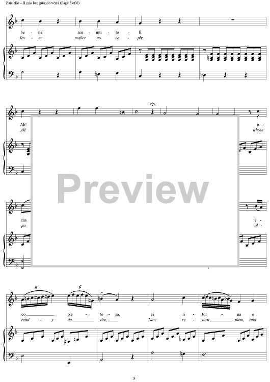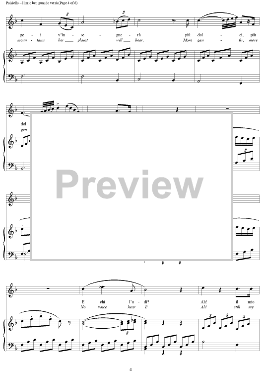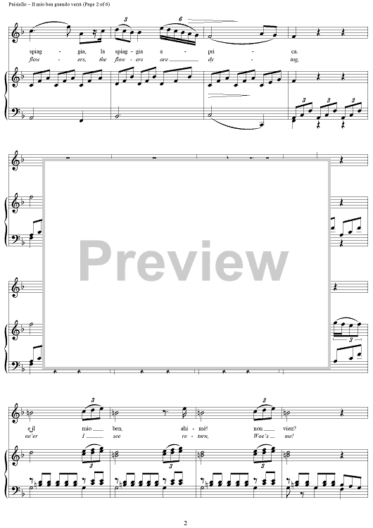 Digital Sheet Music for Il mio ben quando verrà by Giovanni Paisiello scored for Voice/Piano; id:254777