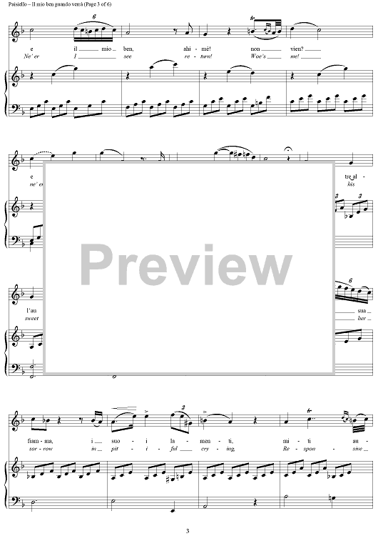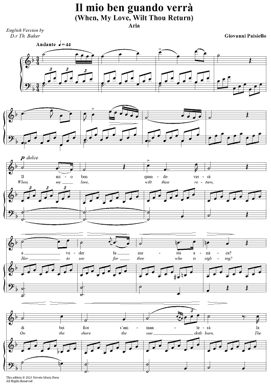 "Il mio ben quando verrà" Sheet Music by Giovanni Paisiello