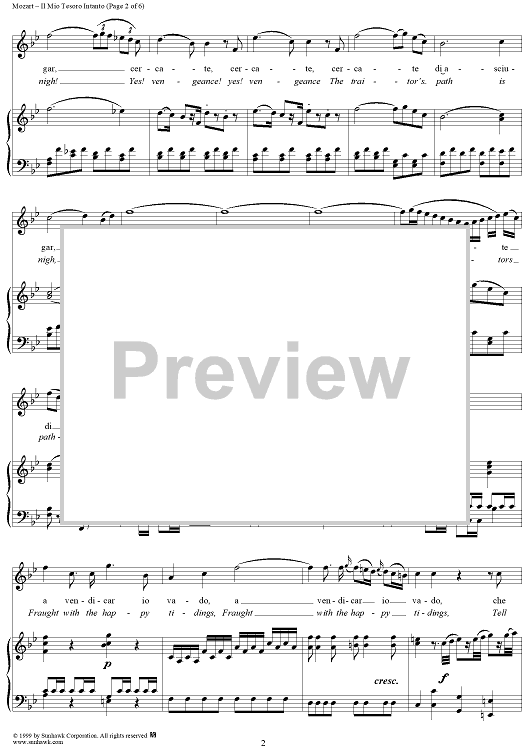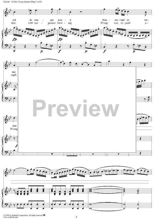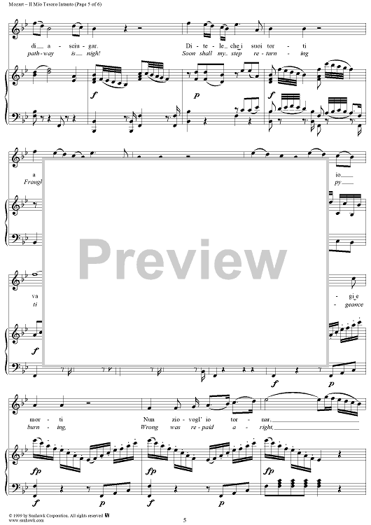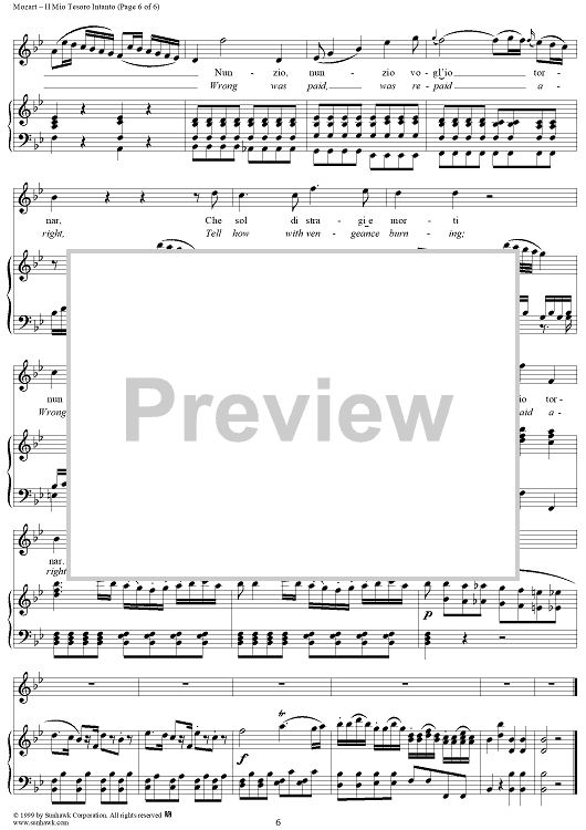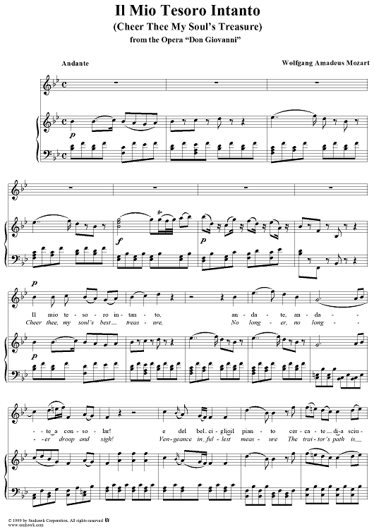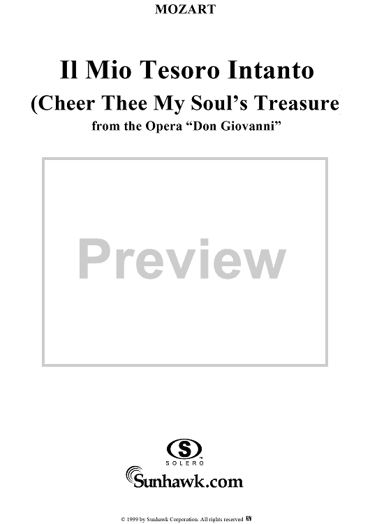 "Il mio tesoro intanto" Sheet Music by Wolfgang Amadeus Mozart