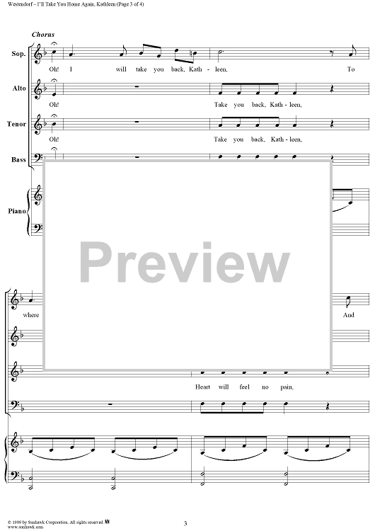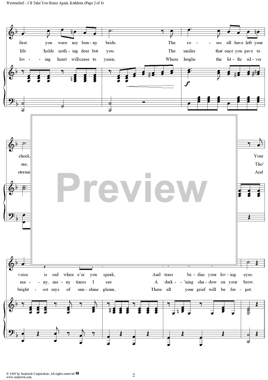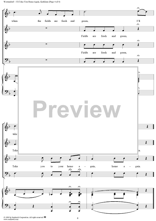 Digital Sheet Music for I'll Take You Home Again, Kathleen (Vocal Solo with optional choral background vocals) by Thomas Westendorf scored for Piano/Vocal; id:112603