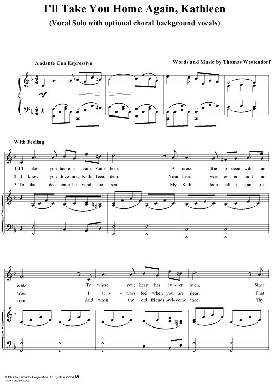 "I'll Take You Home Again, Kathleen (Vocal Solo with optional choral background vocals)" Sheet Music by Thomas Westendorf