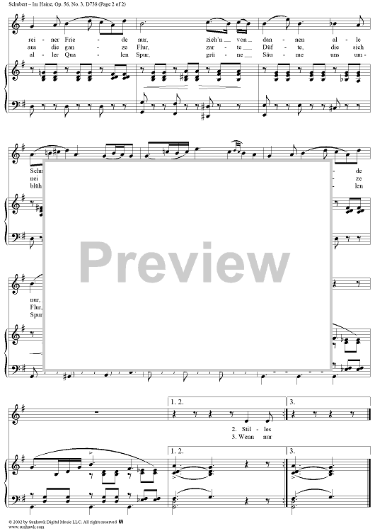 Digital Sheet Music for Im Haine, Op.56 No.3, D738 by Franz Schubert scored for Voice/Piano; id:256615