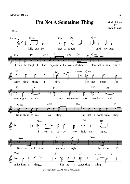 Digital Sheet Music for I'm Not A Sometime Thing by Dom Minasi scored for Lead Sheet; id:354513
