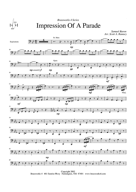 Digital Sheet Music for Impression of a Parade - Euphonium by Scott Ramsey, Samuel Baron scored for Brass Quartet; id:428327