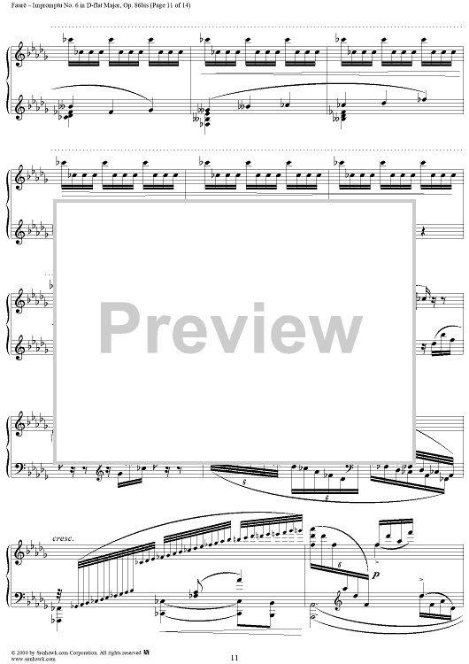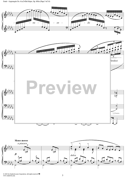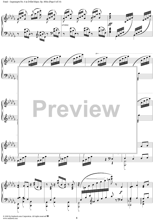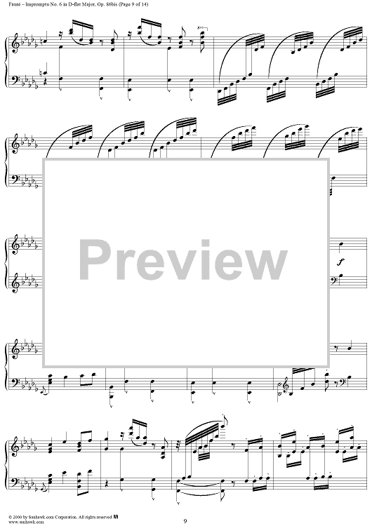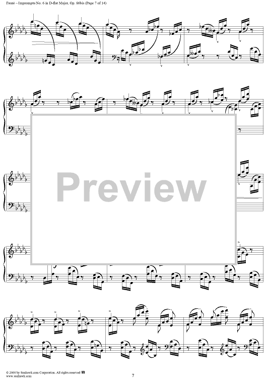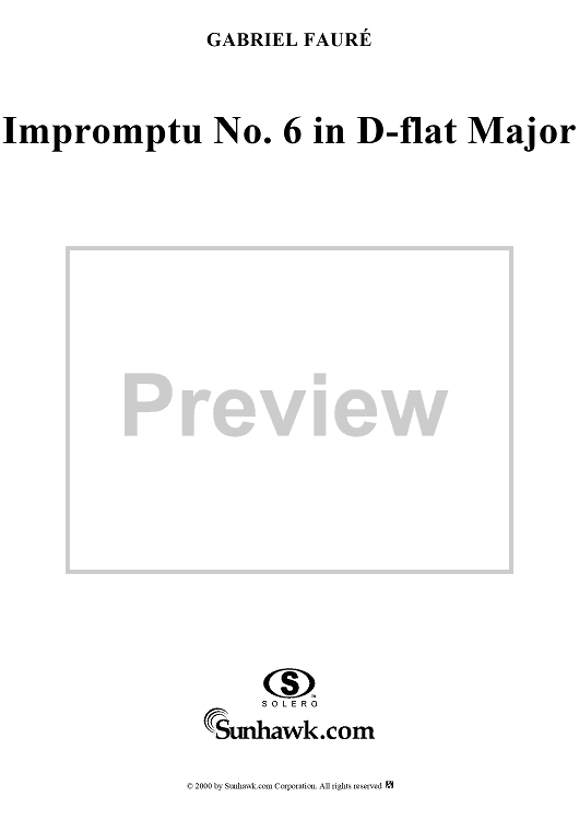 Digital Sheet Music for Impromptu no. 6 in D-flat Major - op. 86 by Gabriel Fauré scored for Piano Solo; id:269869