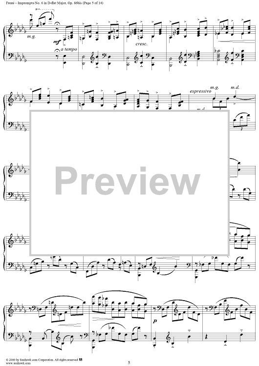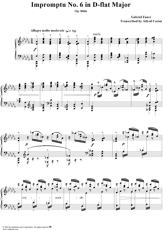 "Impromptu no. 6 in D-flat Major - op. 86" Sheet Music by Gabriel Fauré