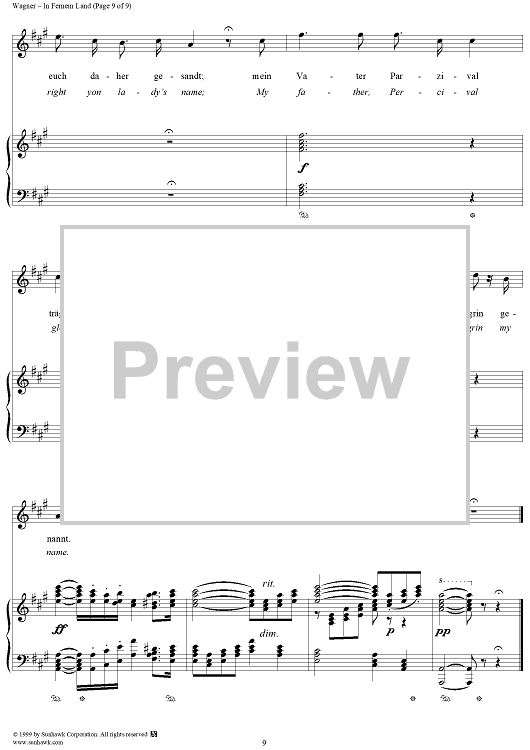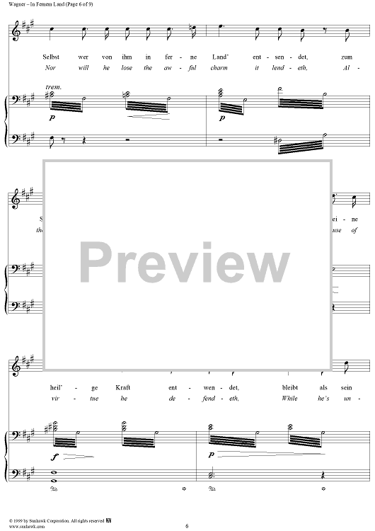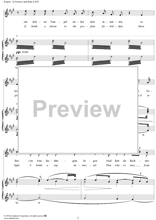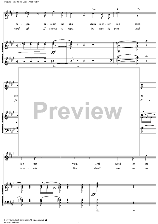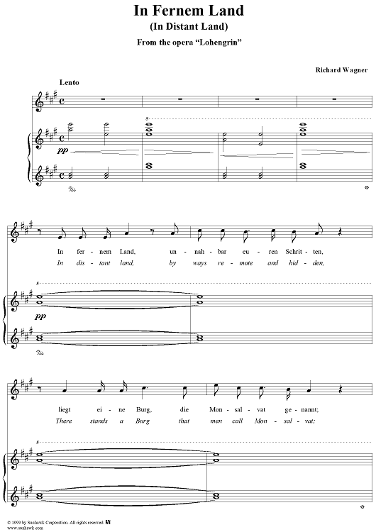 Digital Sheet Music for In Fernem Land by Richard Wagner scored for Voice/Piano; id:112626