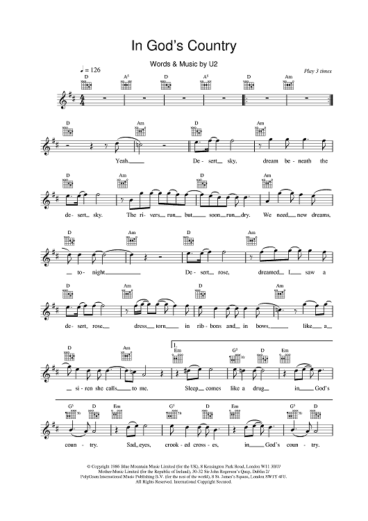 "In God's Country" Sheet Music by U2