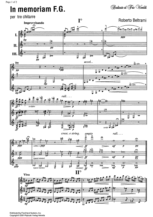 Digital Sheet Music for In memoriam F.G. - Score by Roberto Beltrami scored for 3 Guitars; id:336288