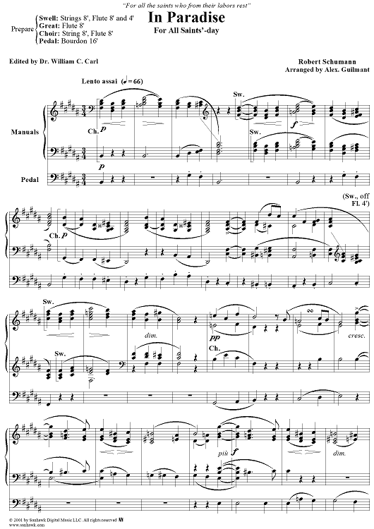 Digital Sheet Music for In Paradise by Robert Schumann, Alexandre Guilmant scored for Organ Solo; id:265504