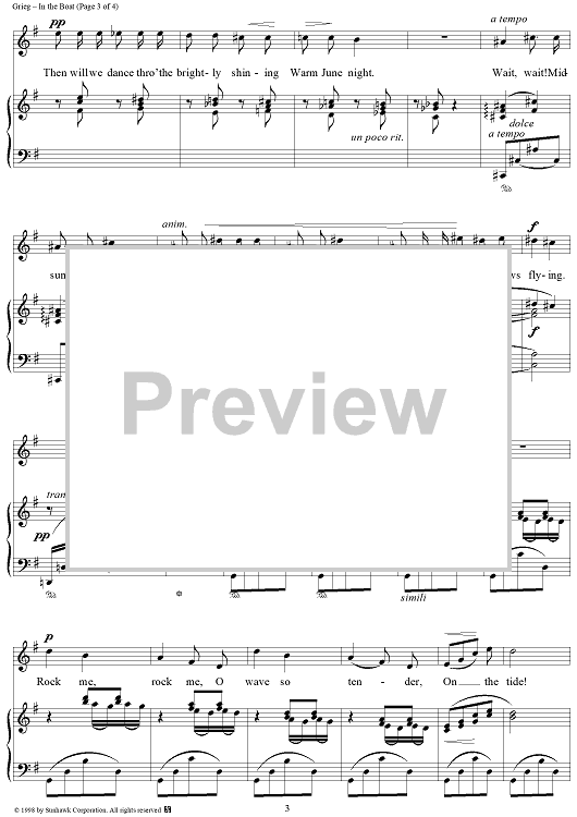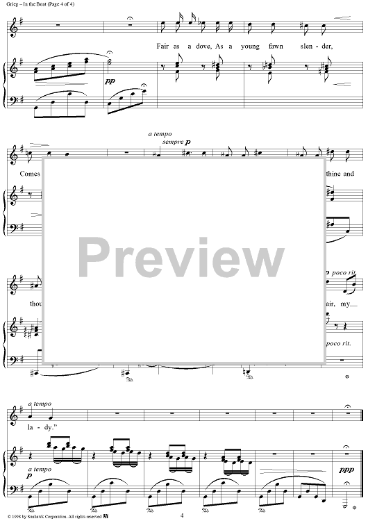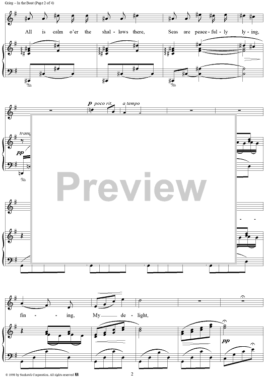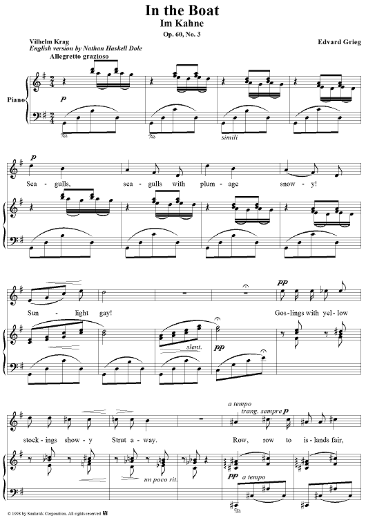 Digital Sheet Music for In the Boat (Im Kahne) by Edvard Grieg scored for Voice/Piano; id:258988