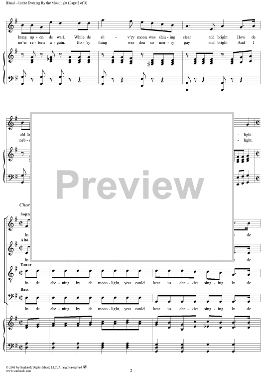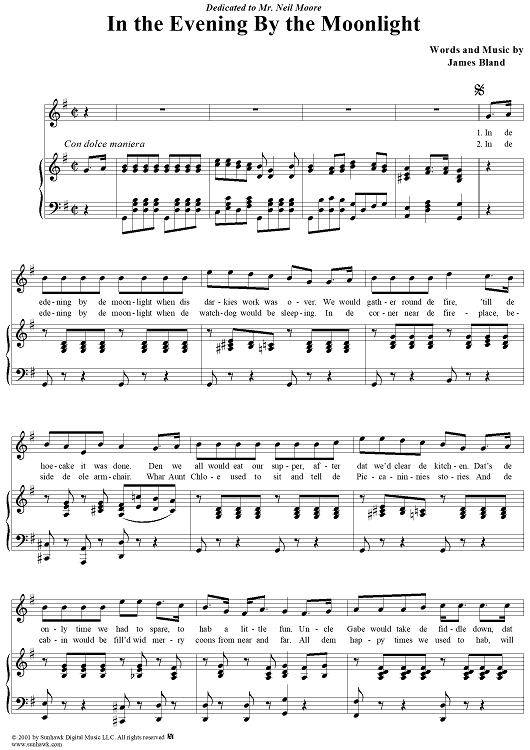 Digital Sheet Music for In the Evening by the Moonlight by James Bland scored for Piano/Vocal; id:265835