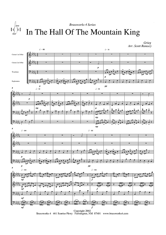 Digital Sheet Music for In the Hall of the Mountain King - Score by Edvard Grieg, Scott A. Ramsey scored for Brass Quartet; id:316673