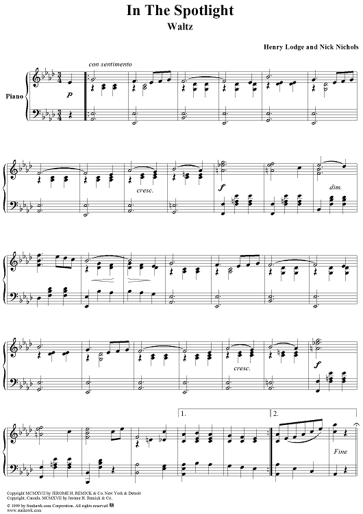 Digital Sheet Music for In The Spotlight (Waltz) by Henry Lodge scored for Piano/Vocal; id:251103