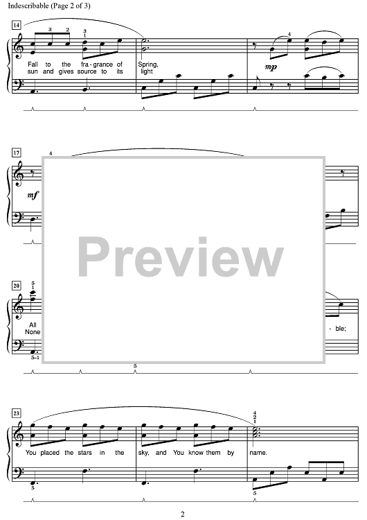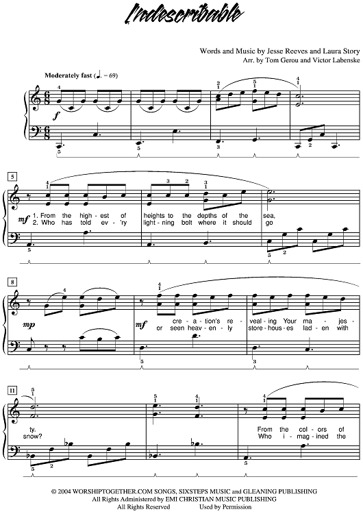 Digital Sheet Music for Indescribable by Jesse Reeves, Laura Story, Tom Gerou, Victor Labenske scored for Piano/Vocal; id:498017