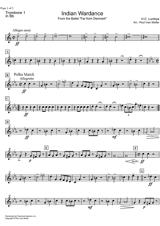 Digital Sheet Music for Indian Wardance from Far from Denmark - Trombone 1 by Hans Lumbye, Poul Ivan Moller scored for Concert Band; id:328393