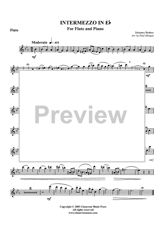 Digital Sheet Music for Intermezzo in E-flat - Flute by Johannes Brahms, Paul Morgan scored for Flute/Piano; id:312798