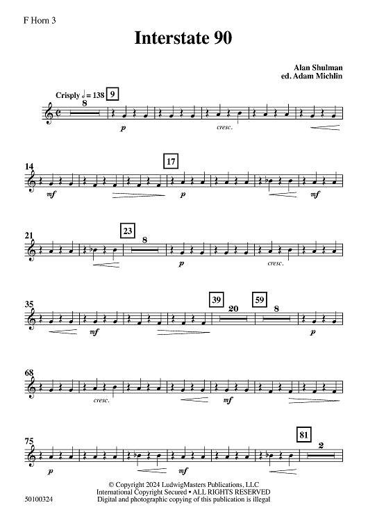 "Interstate 90 - F Horn 3" Sheet Music by Alan Shulman