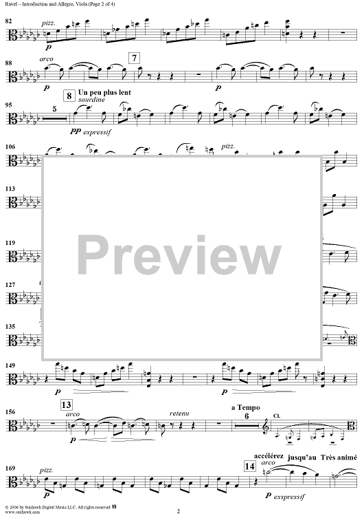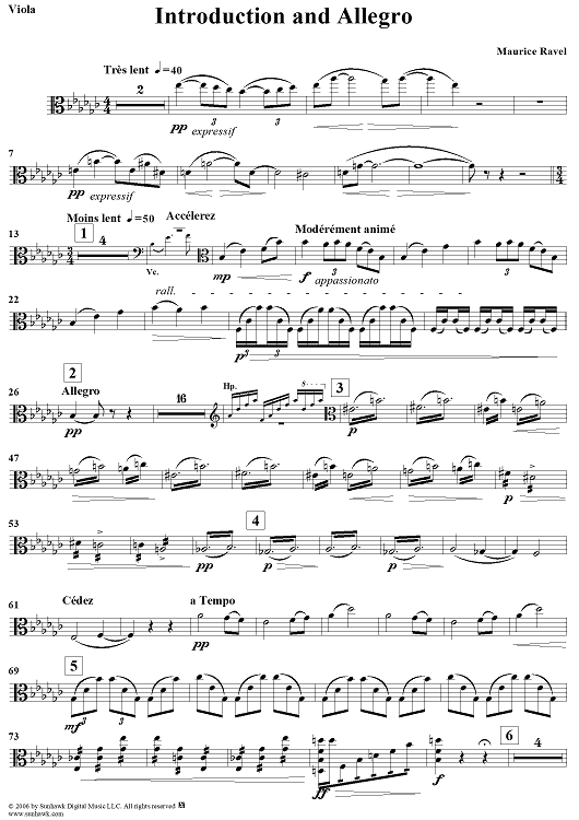 Digital Sheet Music for Introduction and Allegro - Viola by Maurice Ravel scored for Flute/Clarinet/Harp/String Quartet; id:316999