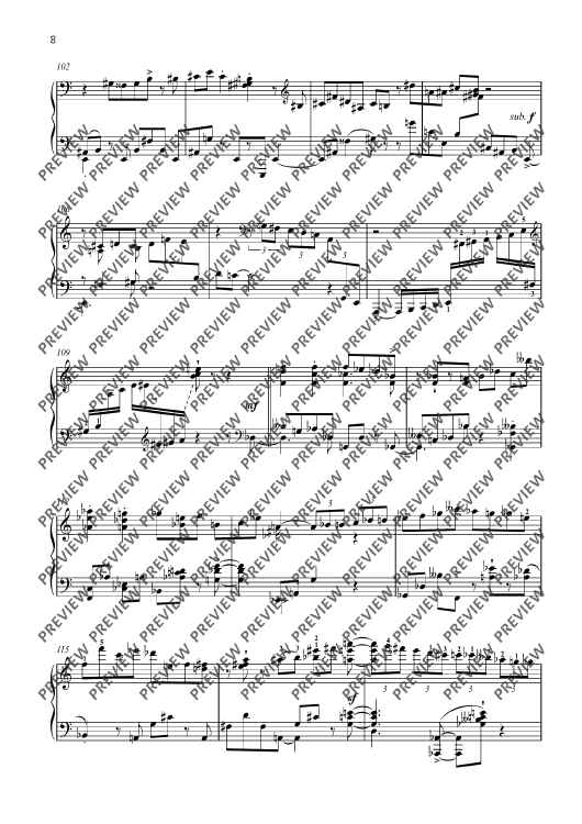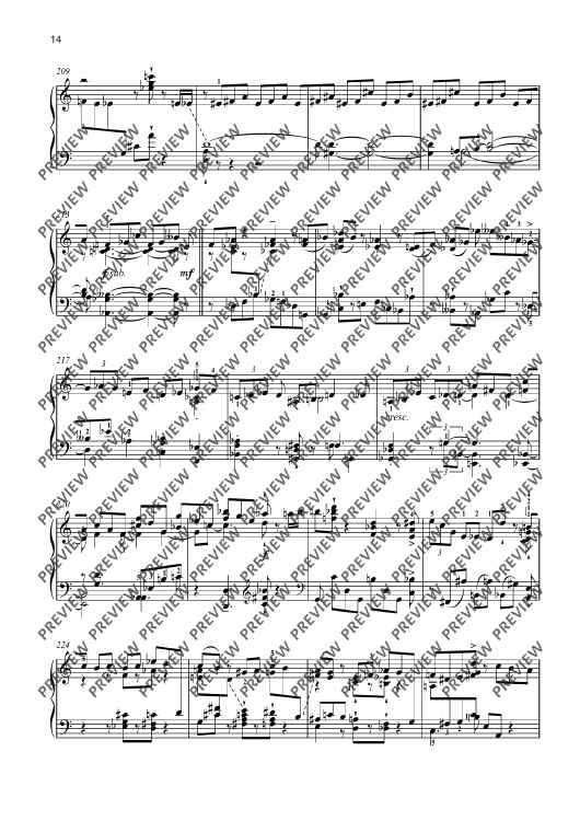 Virtuoso jazz in classical form: A free-tempo introduction is followed by a brisk rondo sonata, which finally ends with a brilliant climax in octaves.