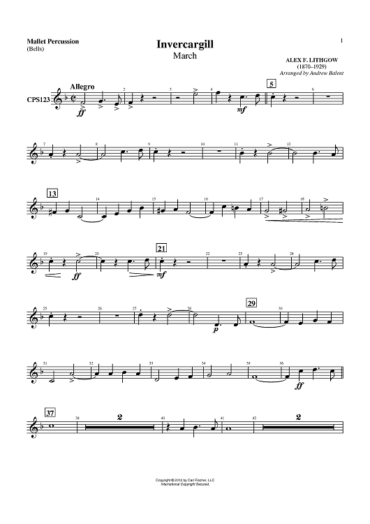 Digital Sheet Music for Invercargill (March) - Mallet Percussion by Andrew Balent, Alex F. Lithgow scored for Concert Band; id:430507