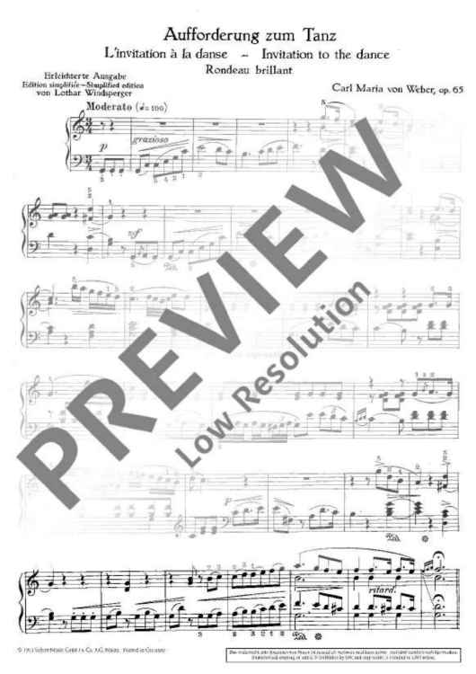 Digital Sheet Music for Invitation to the dance in D flat major by Carl Maria Von Weber, Lothar Windsperger scored for Piano; id:474686