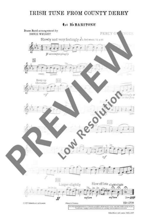 Digital Sheet Music for Irish Tune from Country Derry - Score and Parts by George Percy Aldridge Grainger, D. Wright scored for Brass Band; id:477029