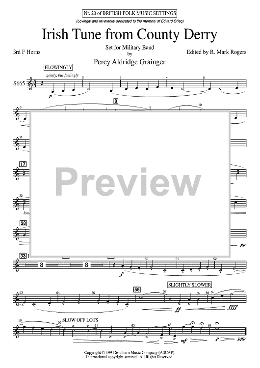 Digital Sheet Music for Irish Tune from County Derry - F Horn 3 by Percy Grainger scored for Concert Band; id:502808